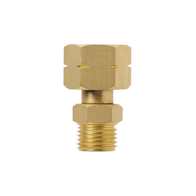Straight fitting gas connection that converts a 3/8" LH fitting to a 1/4" BSP adapter.