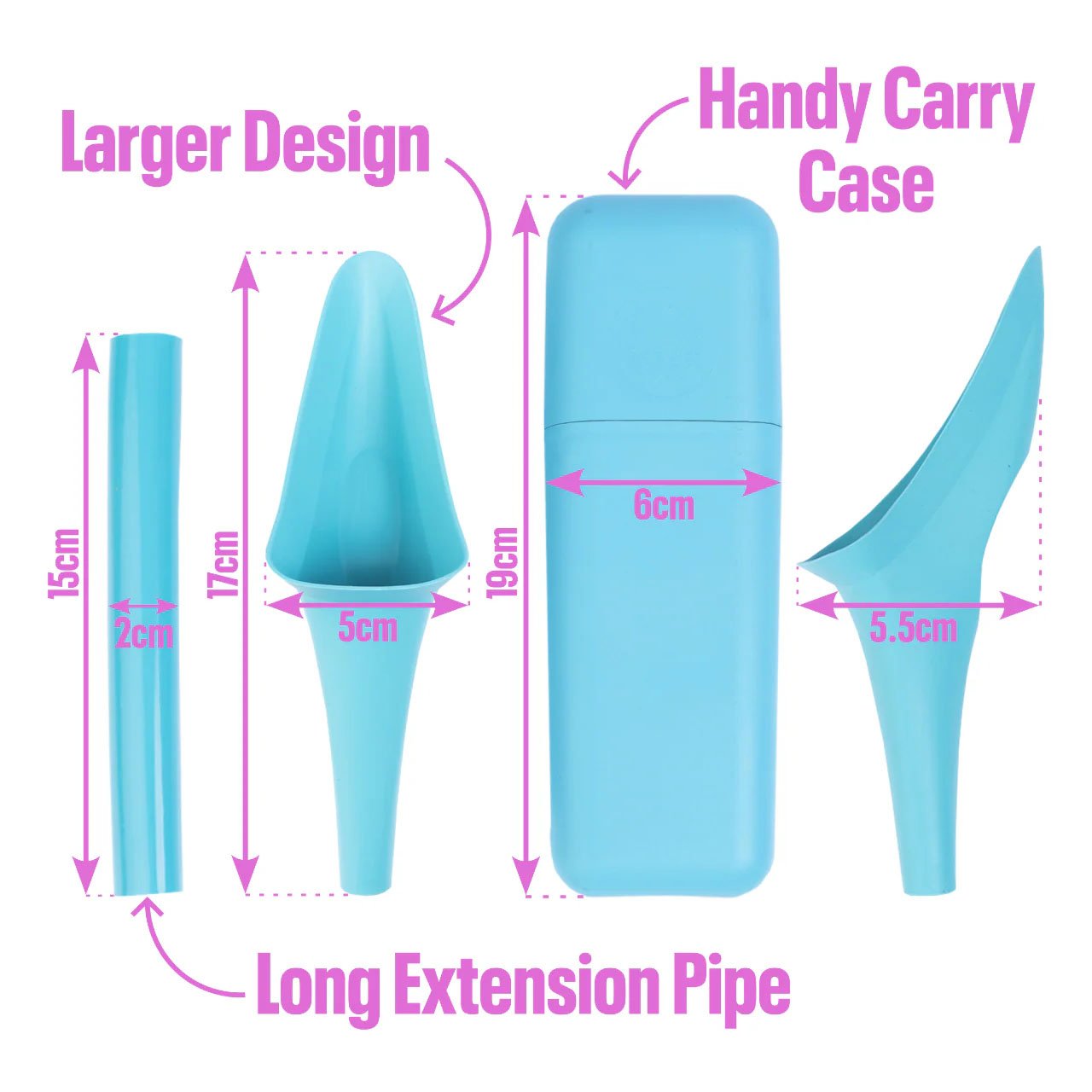 The extension pipe is an extra length pipe that fits easily to your Shewee funnel for use if you’re wearing bulky clothing or enjoy extreme winter sports. It’s also great for extra reach when aiming into a Peebol. The case makes for easy storage to keep all the parts neatly together. Tip! Need to travel light? Urine is sterile as it leaves the body so just take your Shewee without the case.