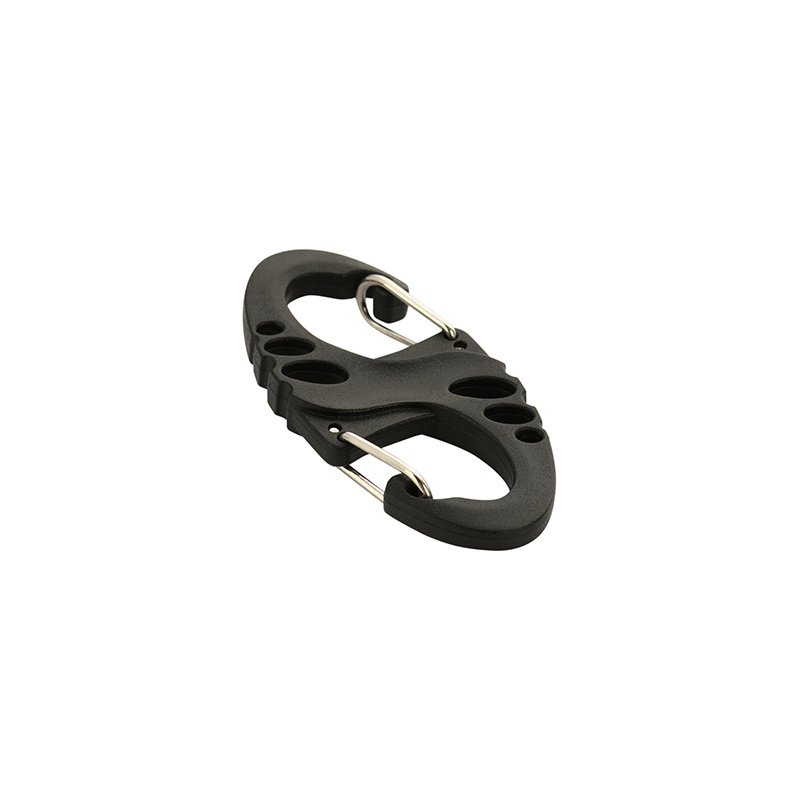 This versatile S-Carabiner is packed with utility, featuring a double side gate opening that allows for easy attachment to two points simultaneously.