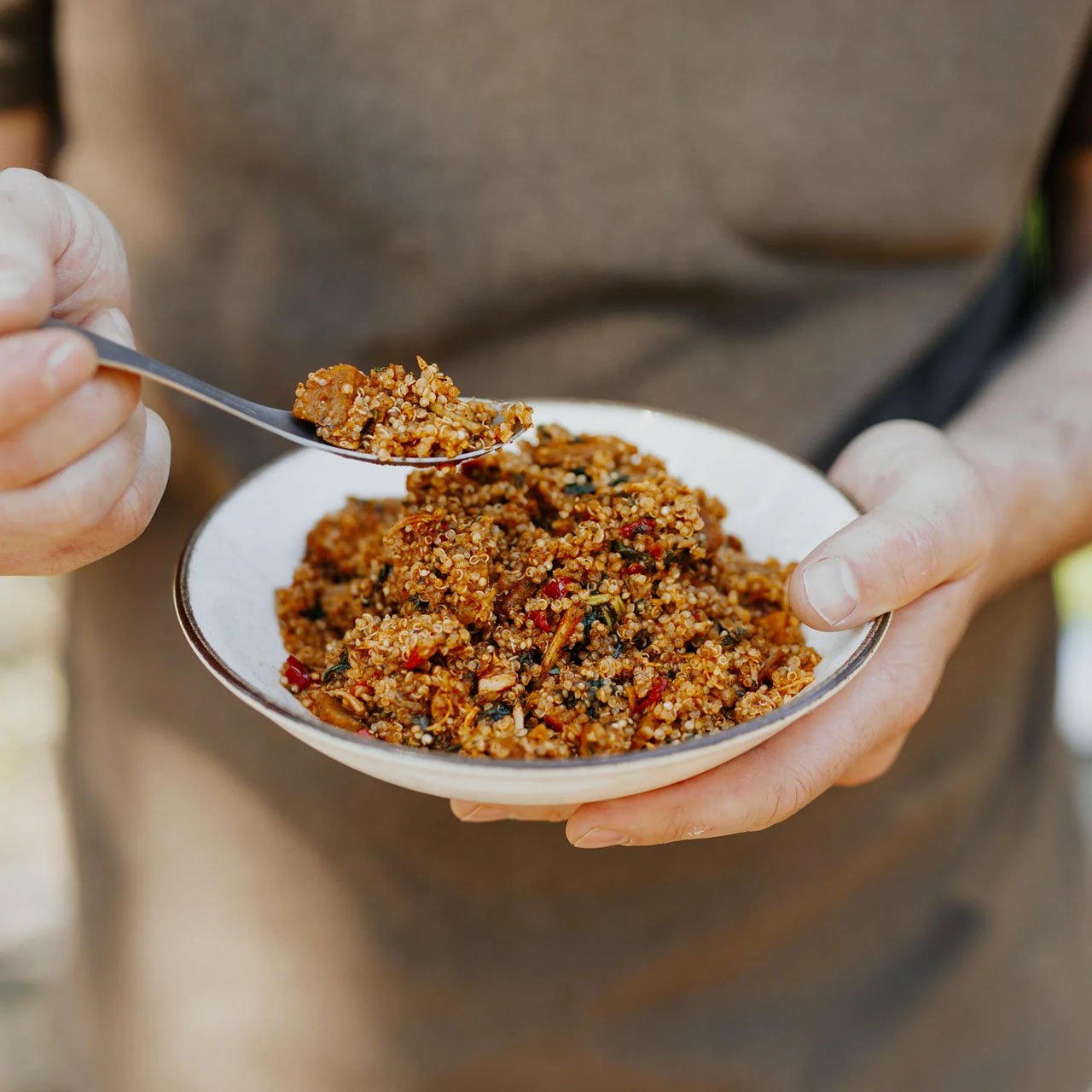 This Elite high calorie meal is light to carry and provides tasty, fast nourishing food for adventure. A delicious savoury meal made from a blend of freeze-dried quinoa, lamb, spinach with smoky paprika flavours. Gluten Free.