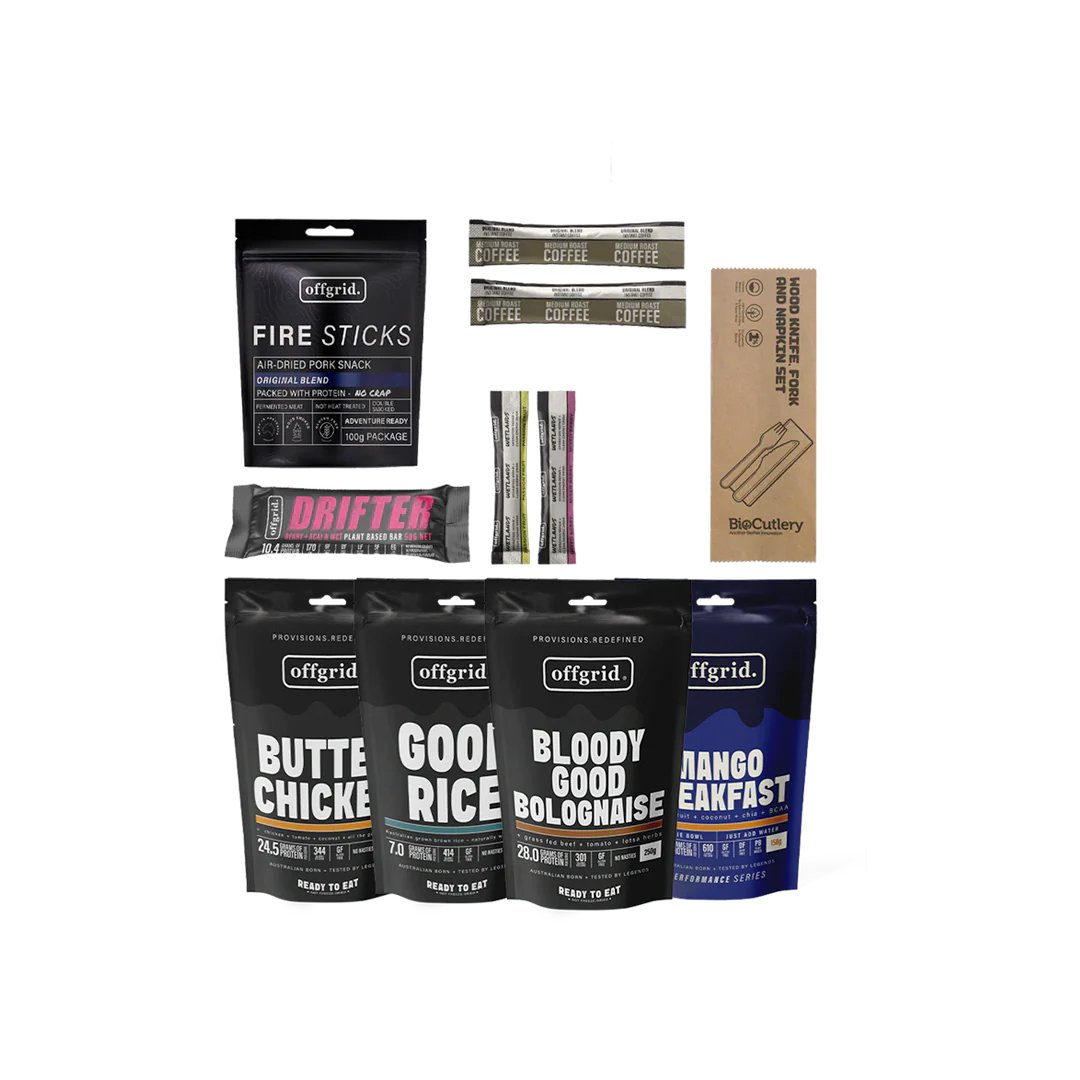 Welcome to Offgrids range of ration packs for lone and hostile applications specifically packed for 24hrs of nutritional rations for one person. These ration packs are formulated by Offgrid for optimal performance, they are 100% natural with no preservatives, they are Gluten Free and Dairy free.