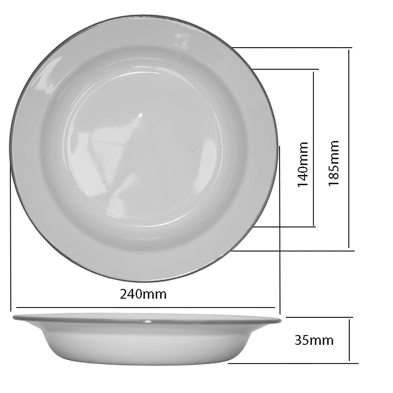 These classic enamel 24cm soup plates make an ideal addition to your camping kit.