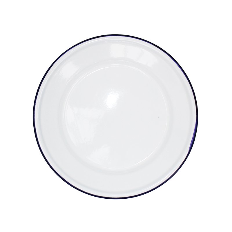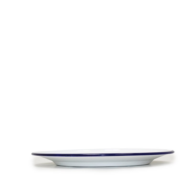 White enamel flat plates. Just as at home on a campsite as in a cafe.