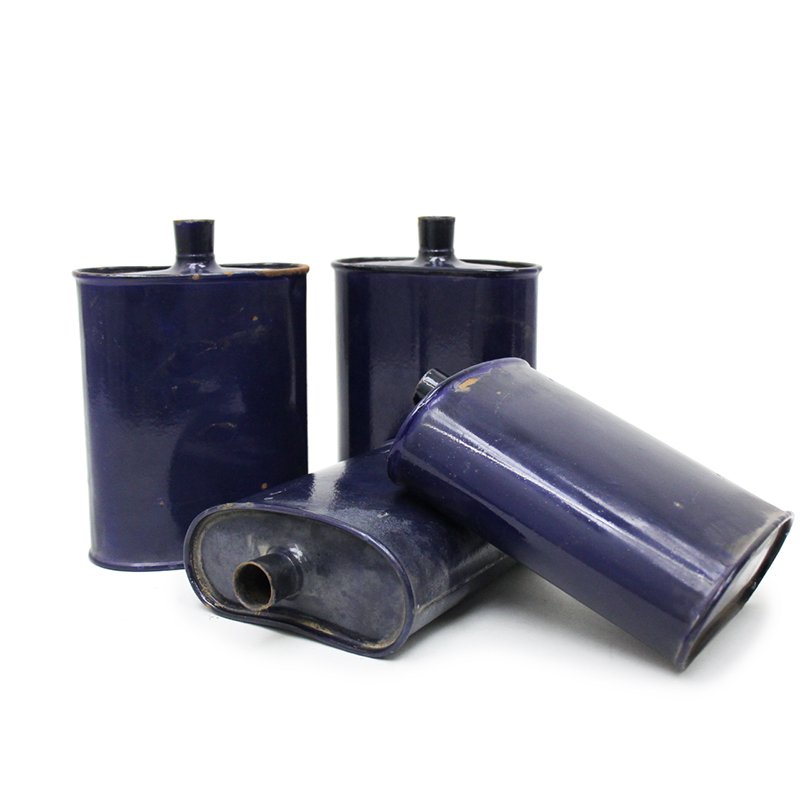 The Mark VI was the standard issue water bottle for British forces during the Great War and by 1939 they were still in fairly common use. The Mark VI is recognizable by its cobalt blue enamel and thick khaki felt cover with the long 18 inch stopper cork cord being stitched directly to the cover. This particular Mk VI has a flat top attached to the body with a ‘tin can’ type seam.