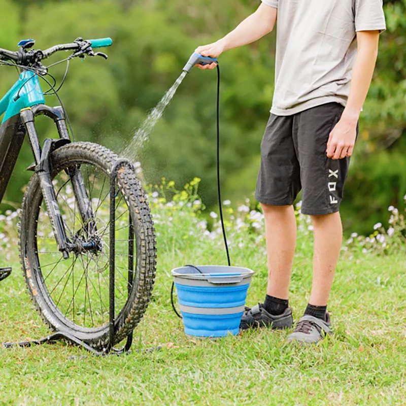 With the pump built into the ergonomic handle and a built-in filter at the hose end, you simply drop the hose into any water source like a bucket or tub - no bulky plumbing or complicated setup required. Perfect for rinsing off sandy feet, muddy boots, surfboards, dishes, pets and more.