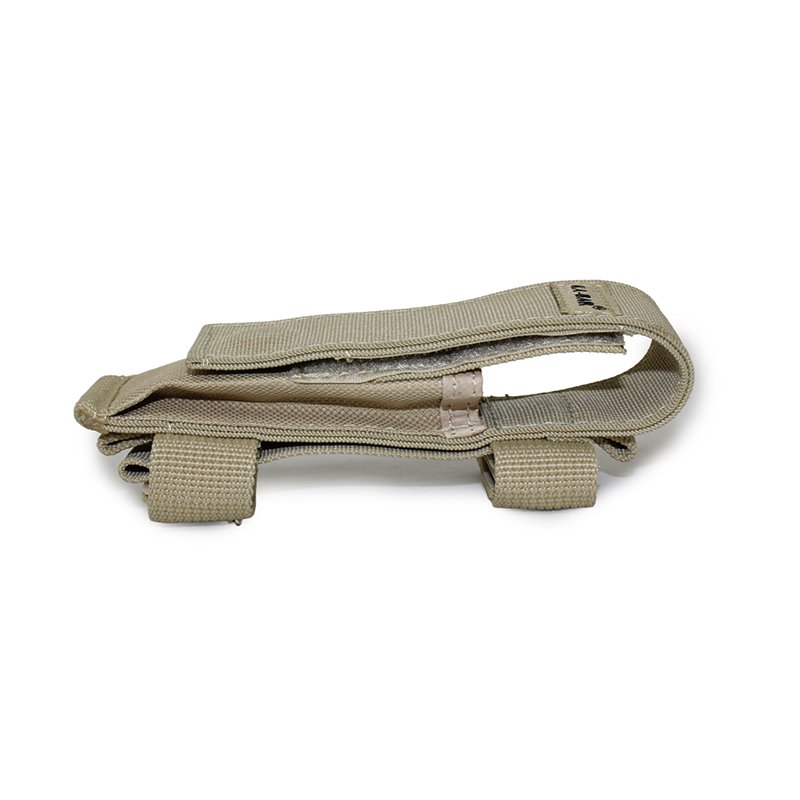 Nylon cordura sheath can be mounted vertically or horizontally on a belt or tactical vest. Features Velcro and snap closure. Made to fit the Ka-Bar MULE folders, it will also hold a folding knife that measures up to 5″ closed.