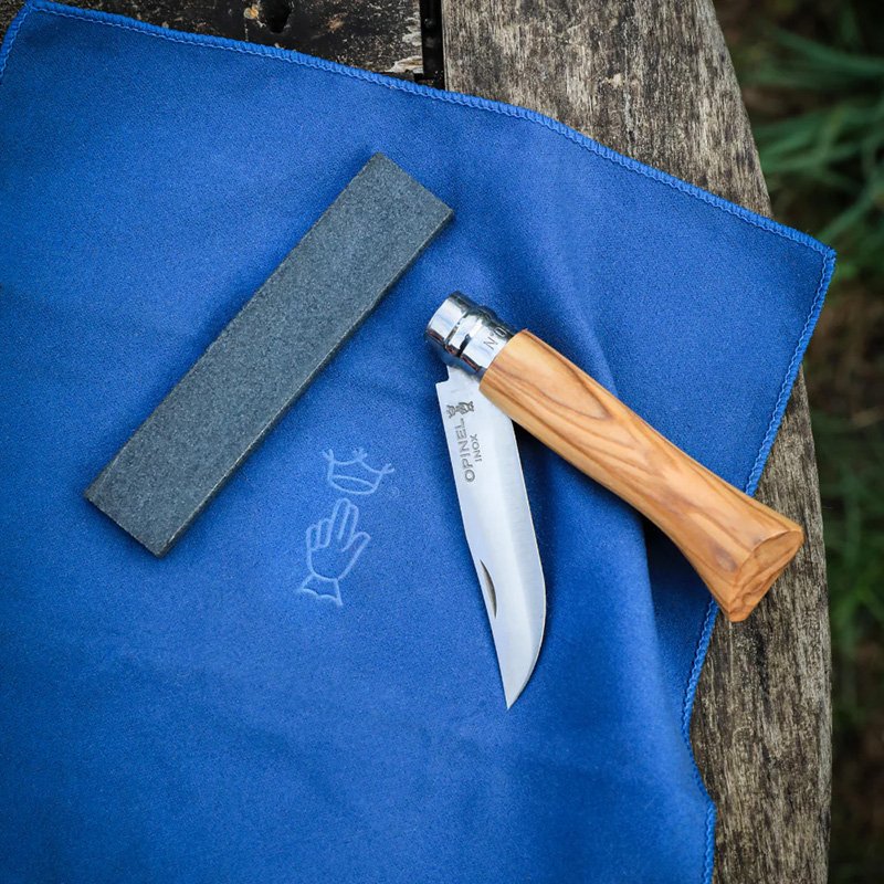 This small natural sharpening stone comes straight from Lombardy in Italy and is made of quartz and carbonates. With a length of 10 cm, it slips easily into your pocket or backpack so you can sharpen pocket knives, kitchen knives and other knives any time, anywhere.