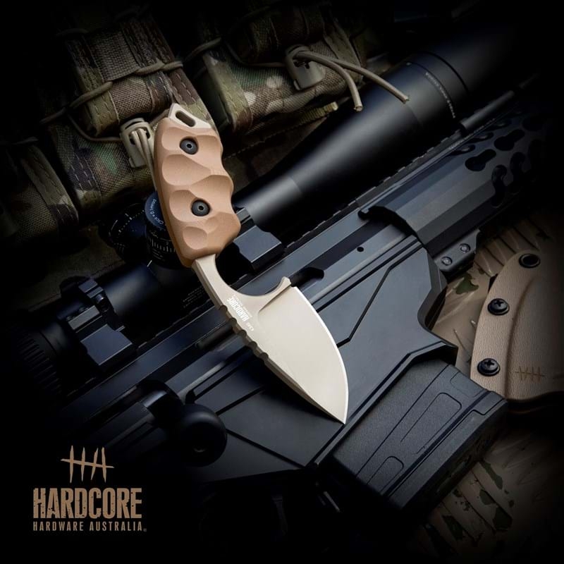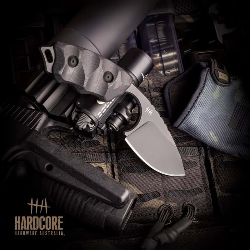 The LFK-03 fixed blade knife from Hardcore Hardware Australia, is designed primarily as an easy to reach back-up knife with superior cutting capability.