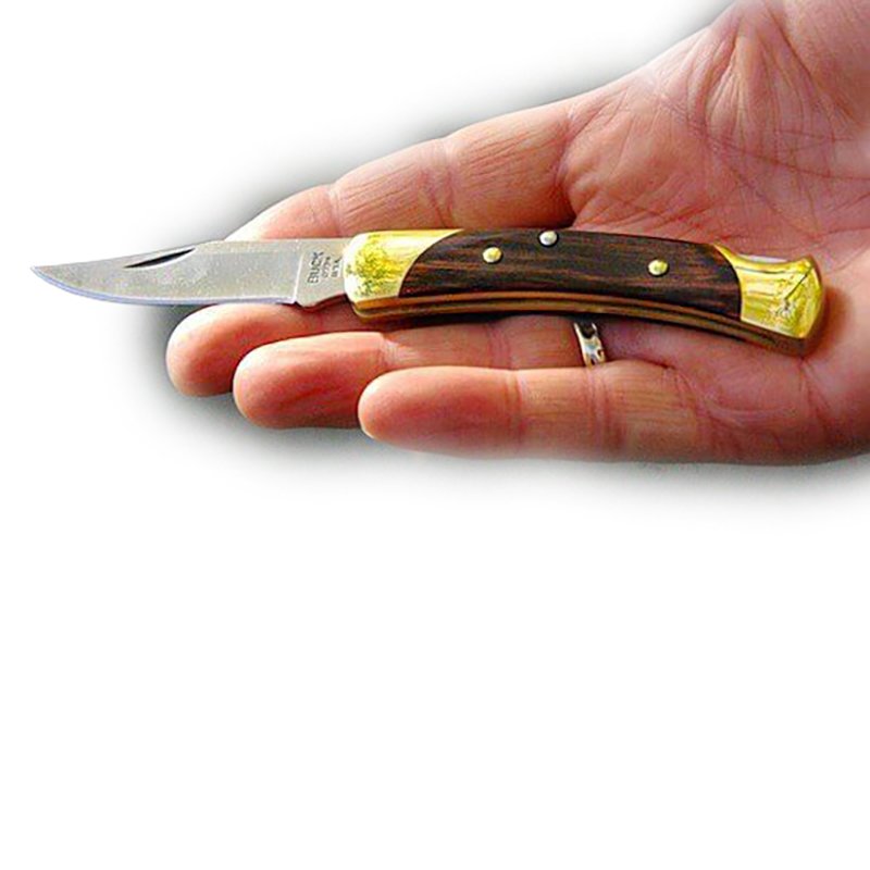 Classic and compact, The 55 is the perfect traditional pocket knife. With a hand-sharpened clip point blade, this knife is ideal for daily tasks. The blade has a nail notch for easy opening. The timeless handle design is constructed with brass bolsters with genuine ebony scales hand finished by our craftsmen. This knife has a Lockback mechanism that securely locks the blade open when in use. This knife was designed as a half-size version of the 110 Folding Hunter®, thus the name, The 55.