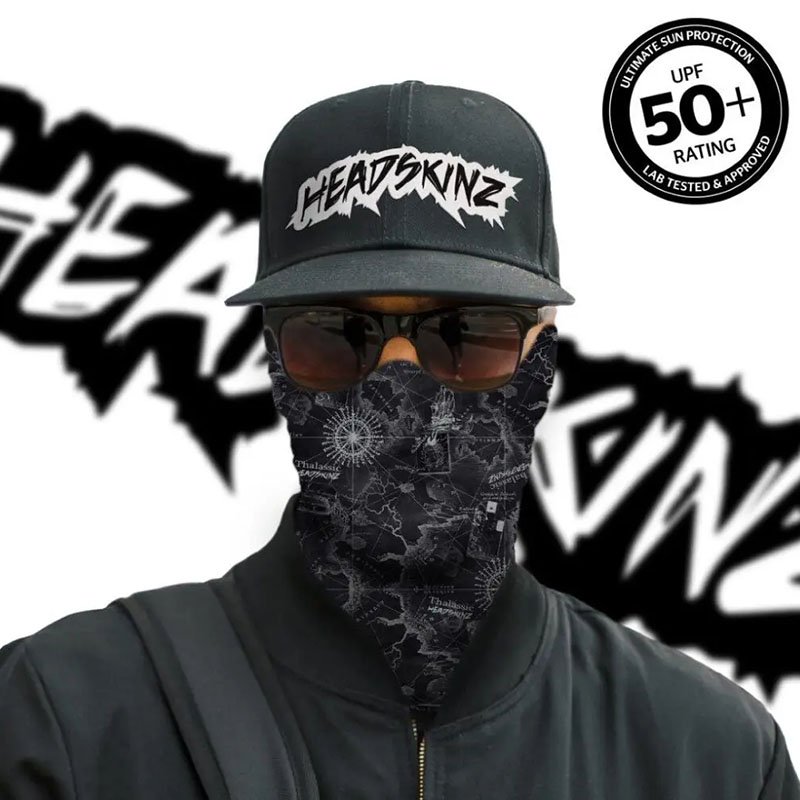 One of the most fundamental tools for a mariner is their Nautical map. An essential tool for safe travel. So it goes without saying that having a Nautical Headskinz range is a “no brain-er”. Now you can cruise the sea in style, or make a statement on land with this awesome. These Solar Shield – Nautical Black Headskinz have you covered. With an awesome thallasic background design and in black/grey scale tones, the Solar Shield – Nautical Black Headskinz have you covered.