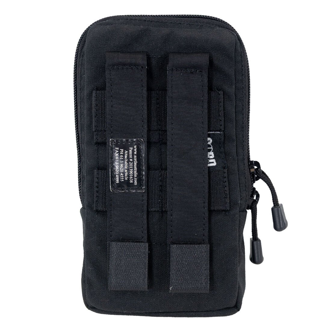 The SORD Dual Phone Pouch is designed to fit two standard sized smartphones or simmilar sized items, and can be affixed to MOLLE platforms and belts.