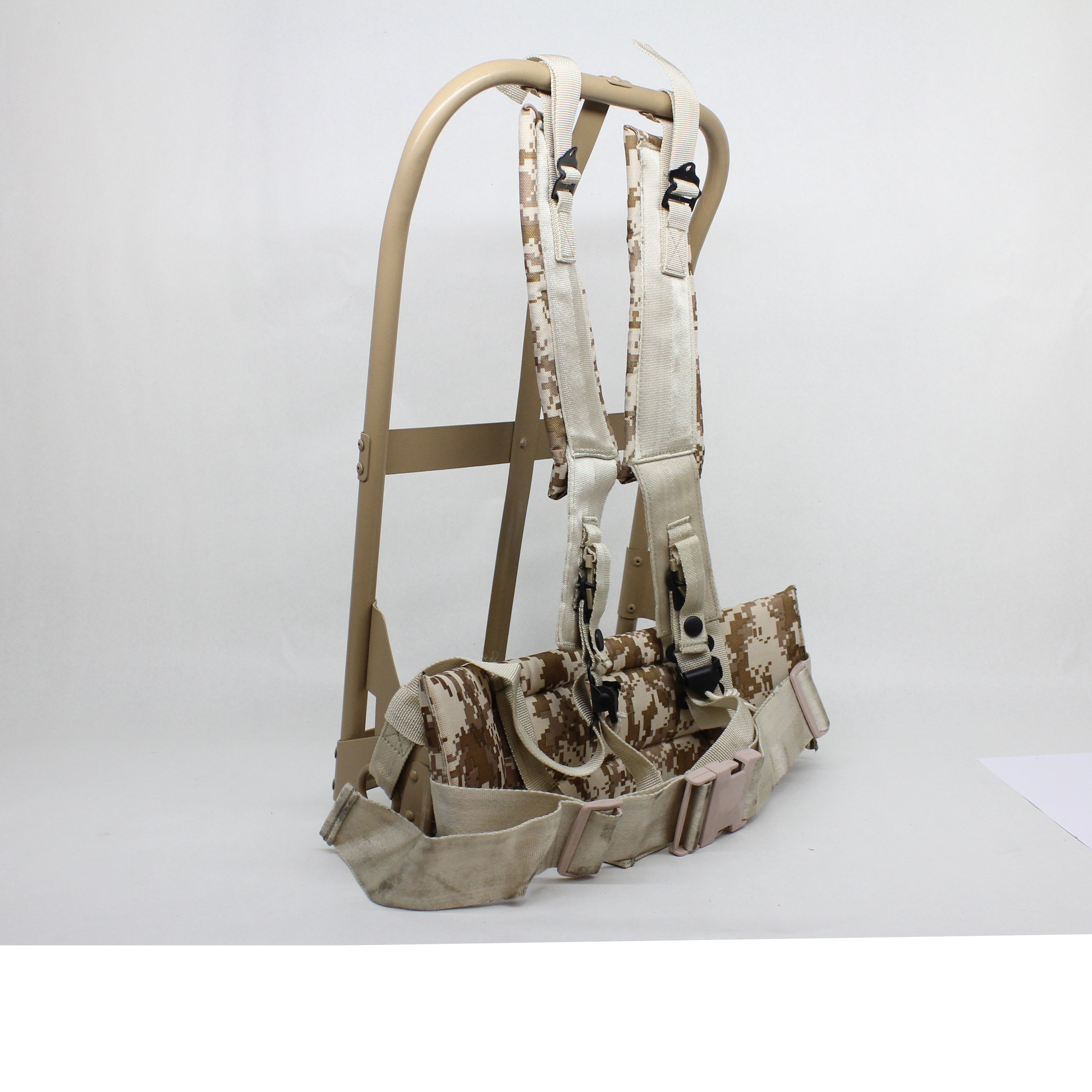 New complete replica medium Alice pack frame in tan and cammo colour. Sturdy metal construction featuring adjustable padded straps and back support for comfort on long hikes or camping adventures.