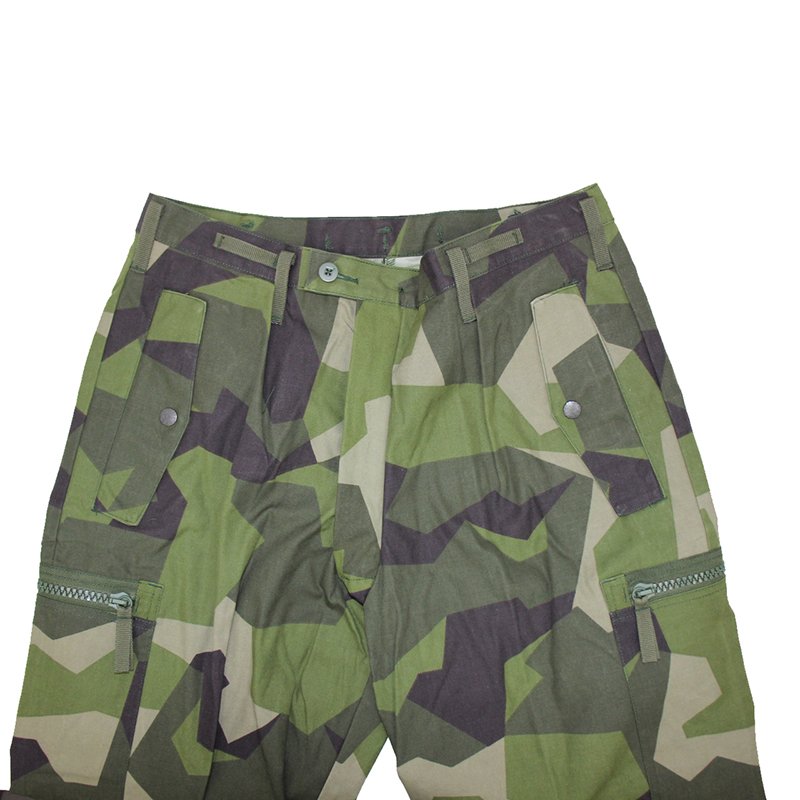 The trousers features distinctive Swedish M90 green tone camouflage in angular shapes.