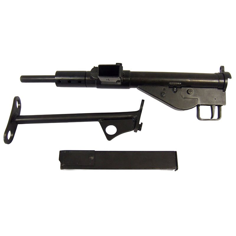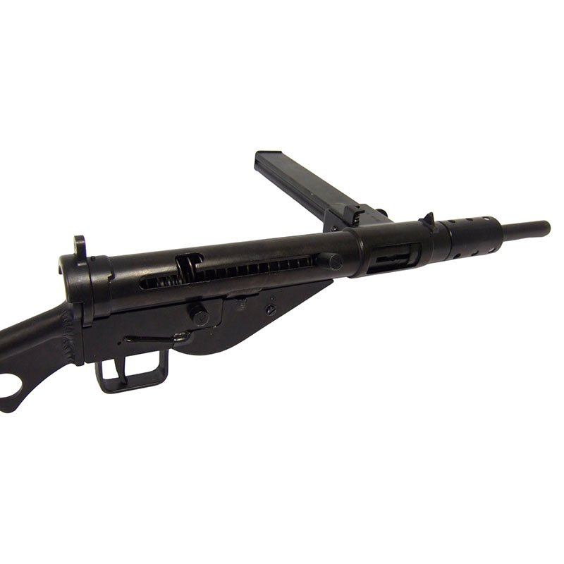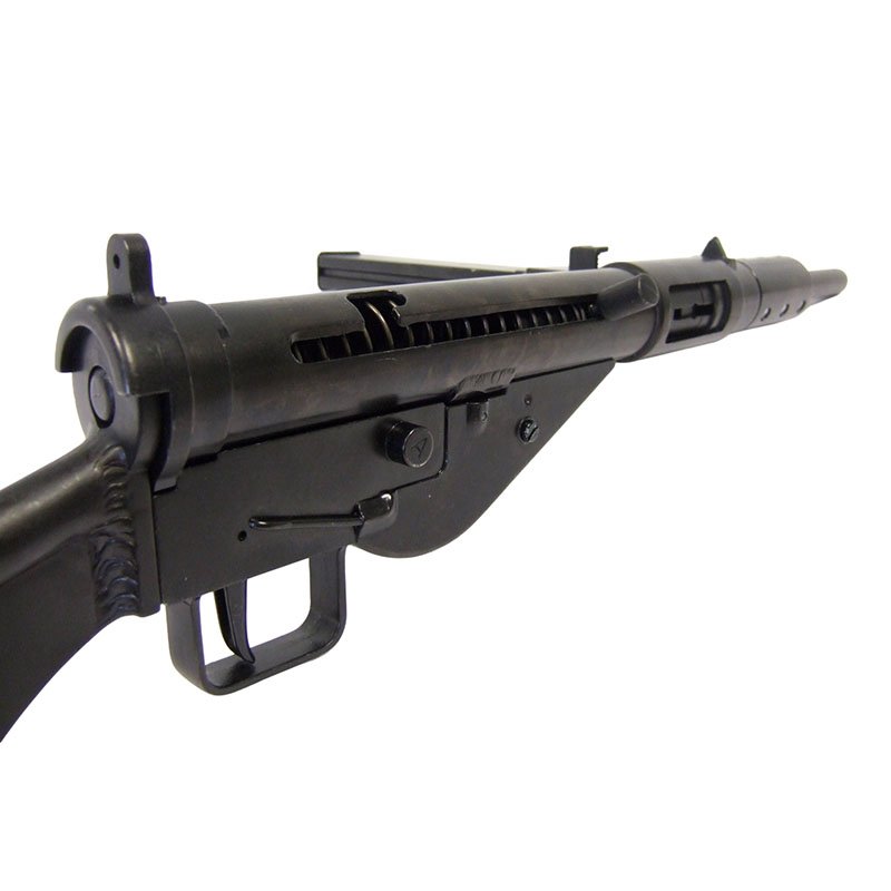 Authentic replica of this machine gun that was born in 1940 when England was alone and threatened by an imminent invasion by Germany. The government was in urgent need to equip their soldiers with a weapon of their own production. Thus was born the Sten submachine gun, a weapon with a debatable design and reliability, but also one of the most easily recognizable of the Second World War would end up being used by both airborne troops and special operations forces as resistance to almost all the countries occupied by the Germans.
