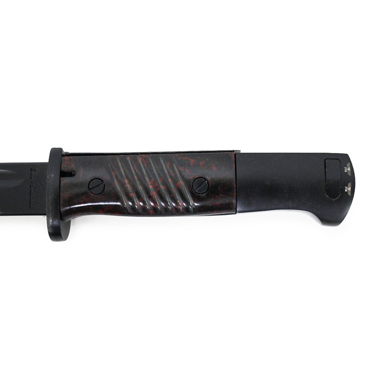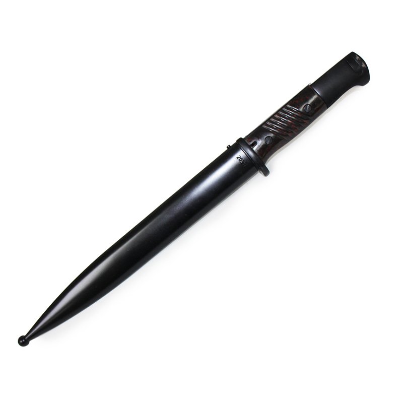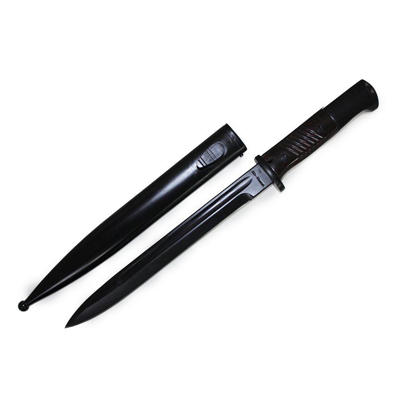 A quality replica German K98 Bayonet. This is the standard issue sidearm used throughout WWII. This K98 Mauser rifle bayonet and scabbard, heavy piece like the originals with a Plastic "Bakelite" handle. Standard issue for the German Heer in WW2, used for everything from opening rations to letters from home. A great piece for reenactors and collectors alike.