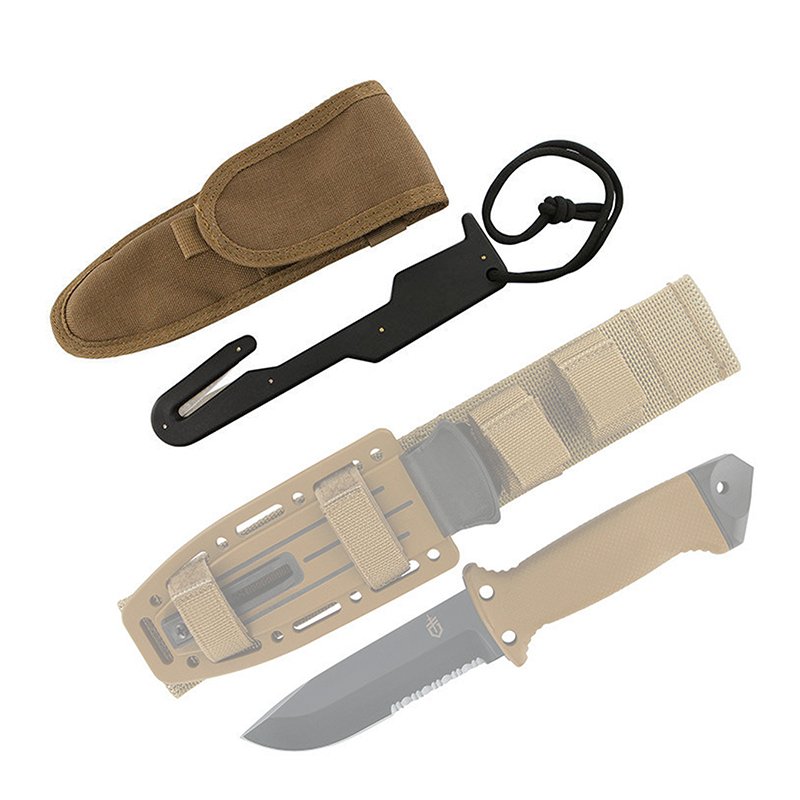 The Gerber Safety Knife model 22-01480 is 7 inches long and features a v-cutter that uses razor blades for cutting. Open boxes, remove shrink wrap from pallets, cut thin rope, remove clothes from injury victims, or slice through seatbelts without hurting yourself or anybody else. A canvas sheath is included to keep the Gerber Safety Knife close to you at all times.