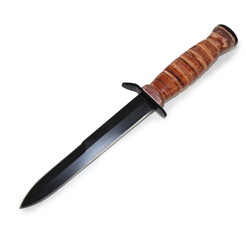 U.S. paratroopers frequently wore an M3 and sheath tied to a boot for emergency use in cutting parachute lines or close-quarters defense.